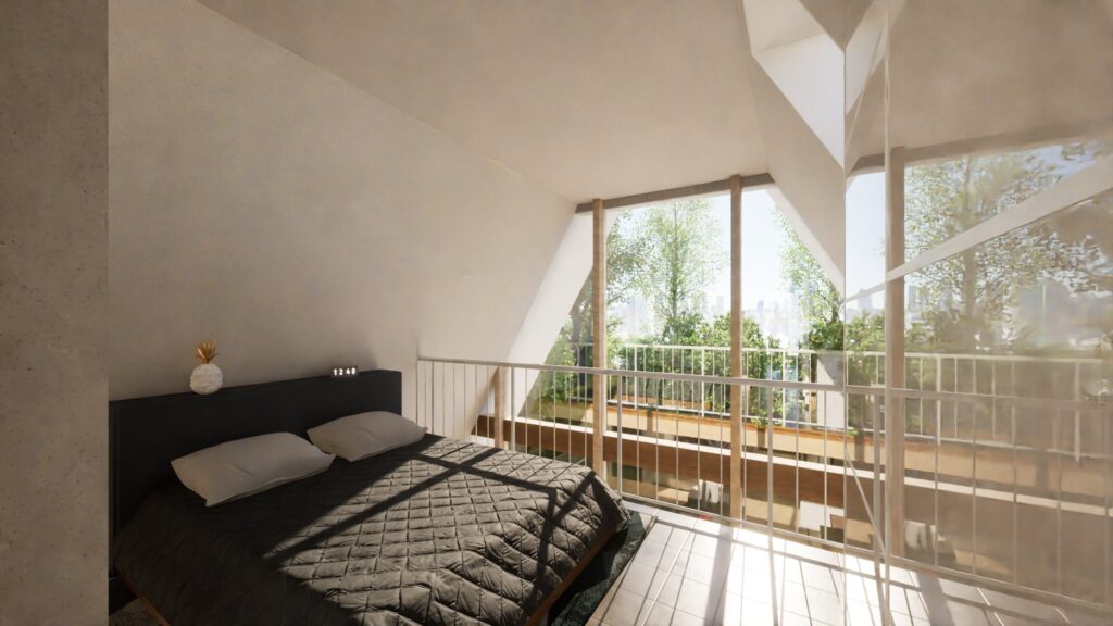 Cette coursive à permis de revoir les façades en apportant du bois sans les dénaturer, de maximiser les volumes intérieurs. Enfin, lors de la conception, nous avons gardé à l’esprit que chaque élément architectural pouvait devenir ludique. En ce sens, la coursive à été travaillée pour devenir un véritable terrain de jeux, permettant aux enfants de profiter pleinement de chaque espace, couverture, creux.